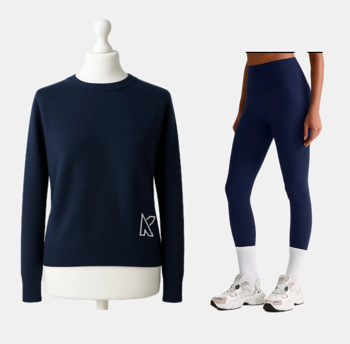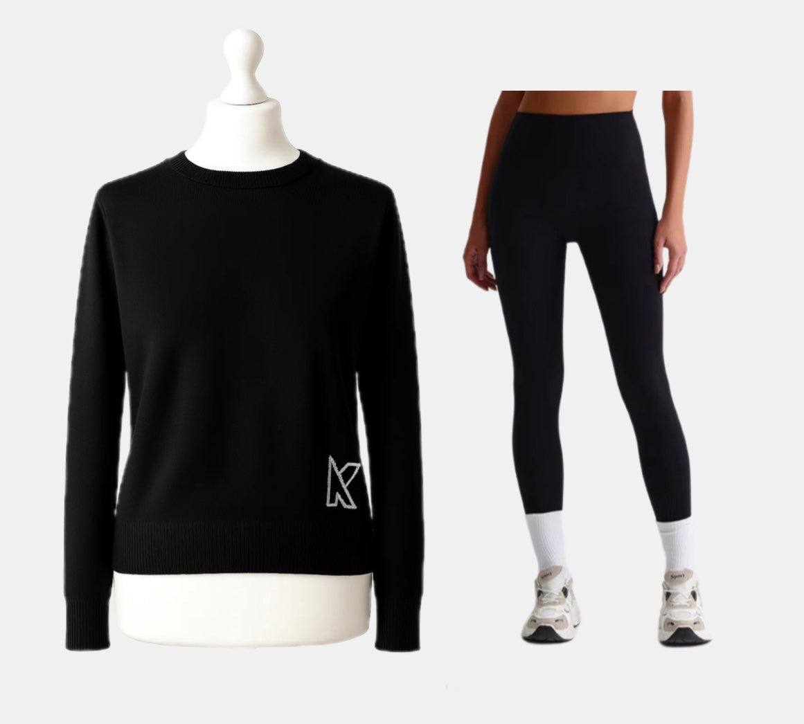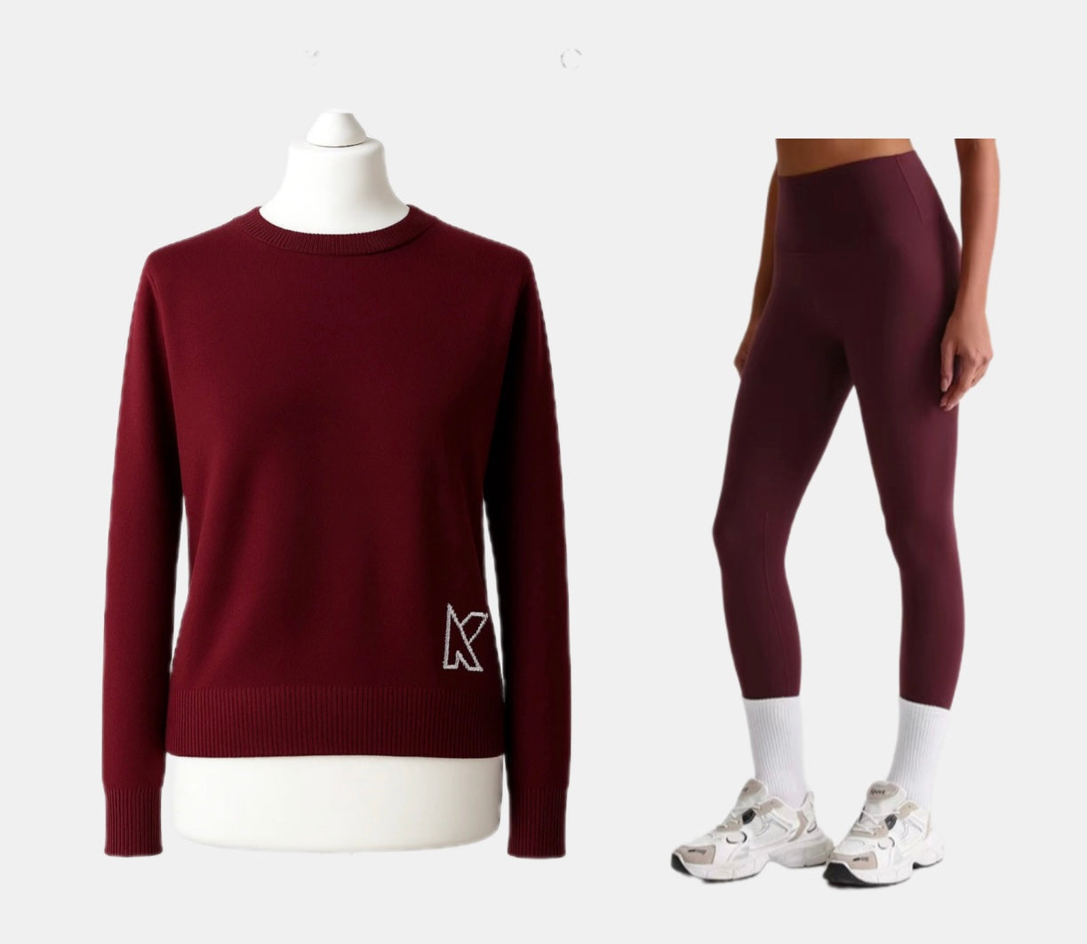 Soft cashmere sweaters and co-ordinating leggings in the same hue create a harmonious, stylish look.